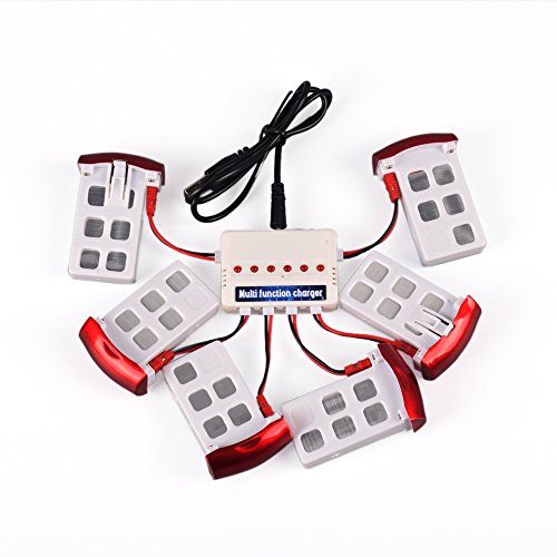 YouCute Batteria 6pcs 3.7V 500mAh e caricabatteria 1to6 per i pezzi di ricambio del drone del quadcopter di syma X5U X5UC X5UW RC (6 batterie +1 caricatore)