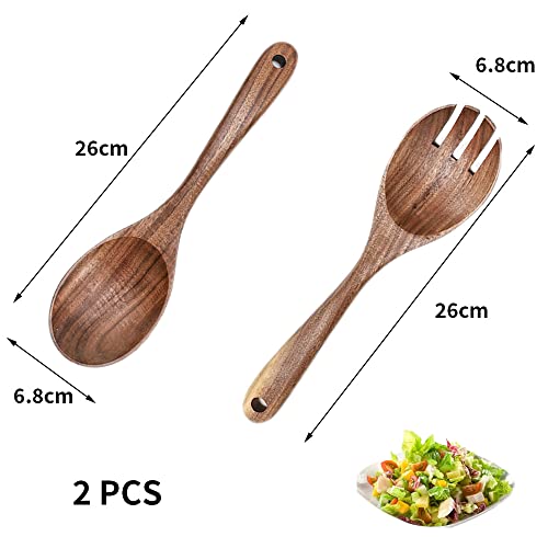YOUDALIS 2 Pezzi Cucchiaio in Legno Forchetta, Set di Posate da Insalata in Legno, Utensili da Cucina per Mescolare Insalata per Padelle Antiaderenti Cucina
