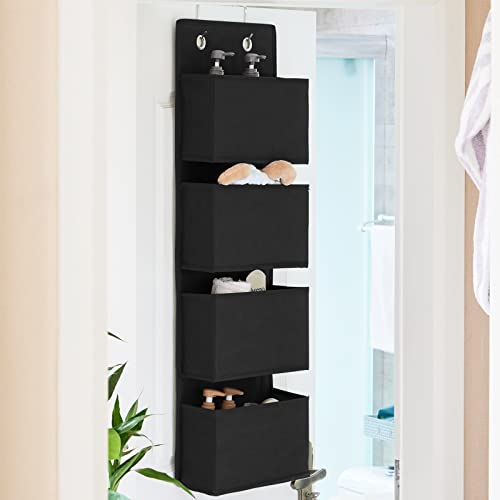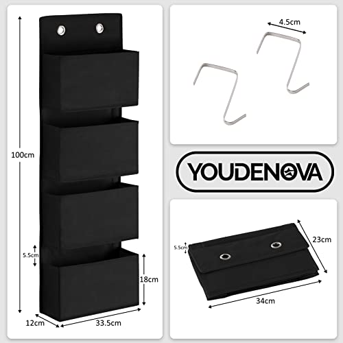YOUDENOVA Organizzatore da appendere, organizzatore per porte, contenitore da appendere con 4 tasche e 2 ganci in metallo, scaffale da appendere, robusto organizzatore per armadi, nero