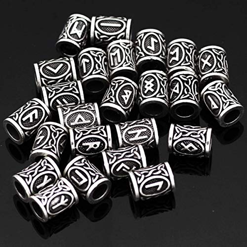 Youger 24 pezzi Norse Viking Rune perline antico DIY braccialetto capelli barba rendendo capelli barba ciondolo braccialetto (argento)