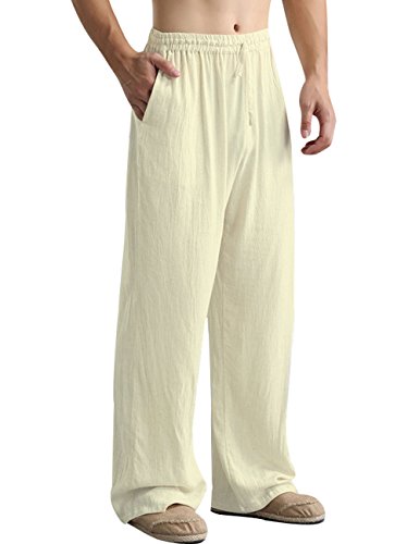 Youlee Uomo Cotone Lino Elastico in Vita Pantaloni con Tasche