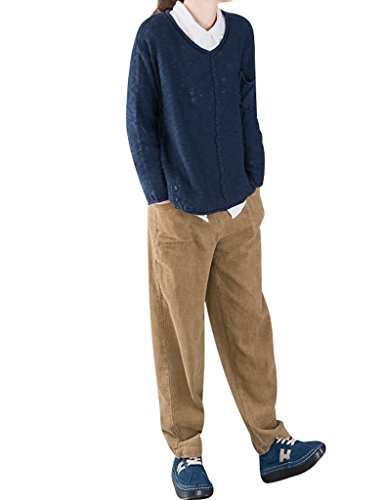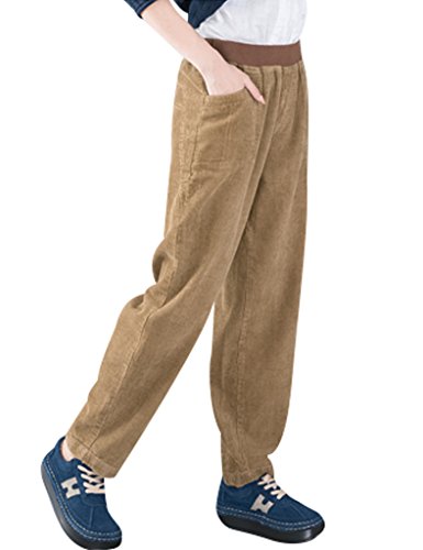 Youlee Donna Elastico Vita Velluto a Coste Largo Gamba Pantaloni Cachi L