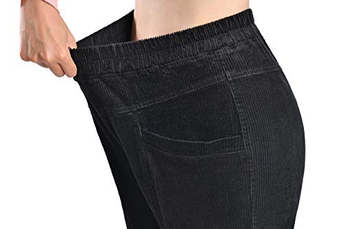Youlee Donna Vita Alta Pantaloni Dritti Pantaloni di Velluto a Coste con Tasche Black S