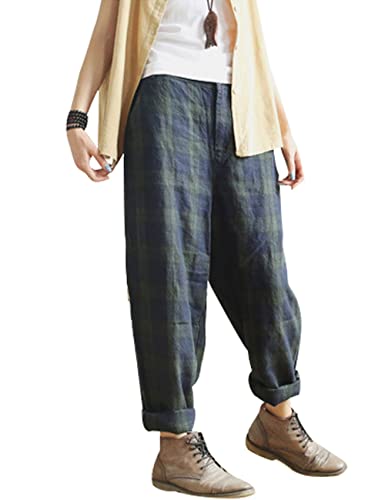 Youlee Donne Elastico Vita Plaid Lino Pantaloni Fit EU 34-44