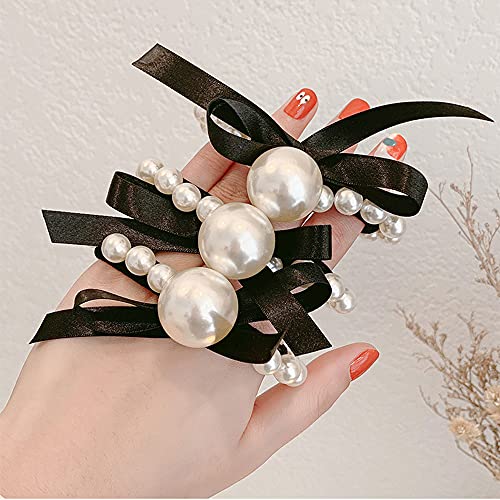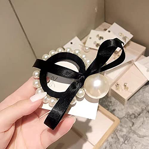 Youliya Fiocco Nero, Anello per Capelli di Perle, Streamer, Corda per Capelli, Elastico Spesso, Corda per La Testa di Nuova Moda Dolce 5 Pezzi