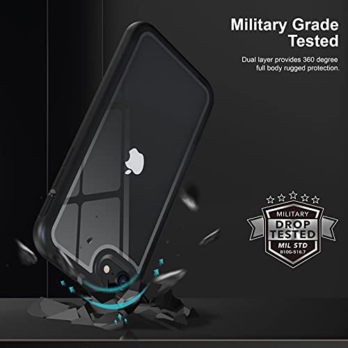 YOUMAKER Cover per iPhone SE 2020 Custodia, corpo intero con protezione per lo schermo integrata Custodia rigida trasparente per iPhone SE 2020 Custodia da 4,7 pollici-Nero