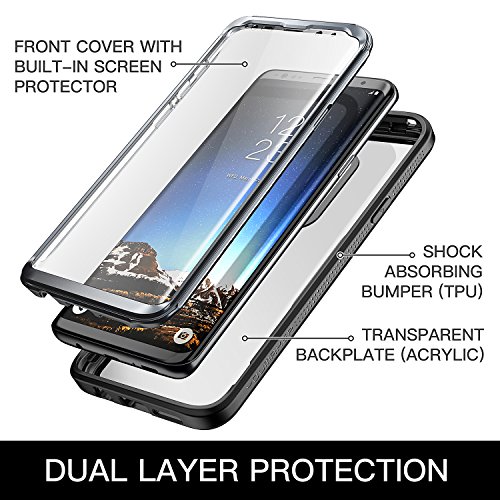 YOUMAKER Crystal Clear con protezione per lo schermo integrata Custodia protettiva resistente per tutto il corpo Slim Fit Custodia antiurto per Samsung Galaxy S9 Plus- Trasparente/Nero