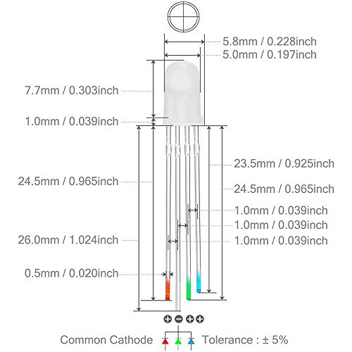 Youmile 100Pack 5mm LED Diodo ad emissione di luce Catodo comune 4Pin RGB Tri-Color (Rosso/Verde/Blu) Le lampade a LED rotonde diffuse glassate potrebbero per Arduino, PCB