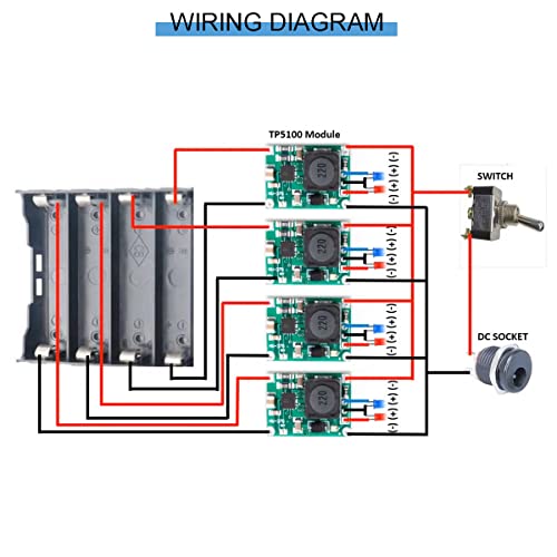 Youmile 5 pz TP5100 Modulo 4.2V 8.4V 2A Doppia Singola Scheda di Carica della Batteria Al Litio Protezione della Batteria Al Litio PCB BMS Board con 18650 Custodia Batteria Cavo Rosso e Nero