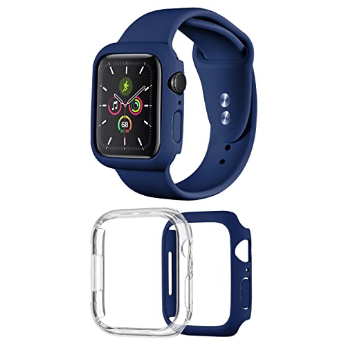 Young & Ming Compatibile con Apple Watch 45mm Series 8/7 Custodia, [2 Pack] Cover Rigida PC [Senza Protezione per Lo Schermo] Anti-graffio e Anti-Goccia Case,Blu+Trasparente