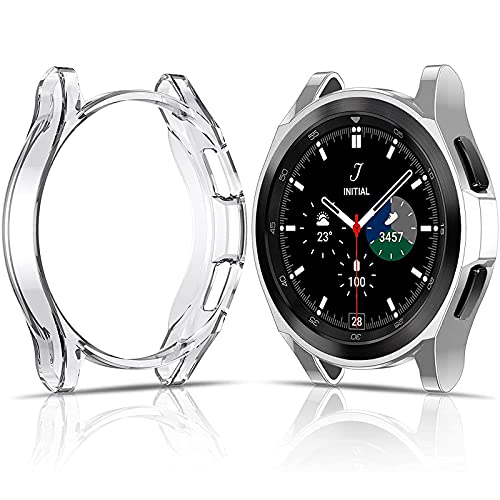 Young & Ming Cover per Samsung Galaxy Watch 4 Classic 46mm Custodia,[2 Pezzi] PC Antiurto Custodia per Galaxy Watch 4 Classic 46mm,Trasparente/Argento