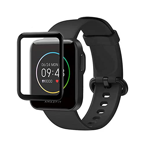 Young & Ming [3 Pezzi] Vetro Temperato per Amazfit Bip S/Bip S Lite, [3D Curved Edge to Edge], Anti-Graffio, Bubble Free Pellicola per Amazfit Bip S Lite, Nero