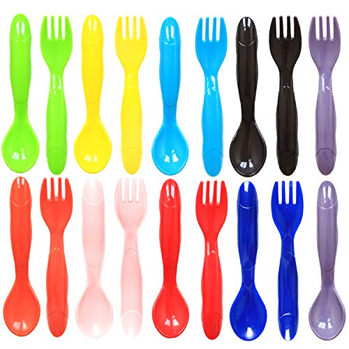 Posate per bambini - Totale di 36 pezzi, 18 set in 9 colori assortiti, 9 set di utensili in plastica per bambini. 18 forchette, 18 cucchiai, in 9 vivaci colori assortiti.