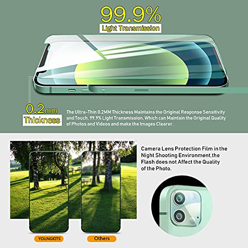YOUNGKITS 2+2 Pezzi Vetro Temperato Compatibile con iPhone 12 6,1 Pollici, Includere 2 Pezzi Pellicola Protettiva e 2 Pezzi Pellicola Fotocamera, Anti Graffio, Durezza 9H, HD Schermo Pellicola