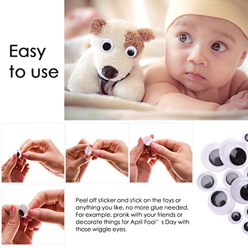 Facile da usare. Staccare l'adesivo e attaccare ai giocattoli o qualsiasi cosa ti piaccia, non più bisogno di colla. Ad esempio, fai uno scherzo con i tuoi amici o decora le cose per il primo di aprile con quegli occhi che si muovono.