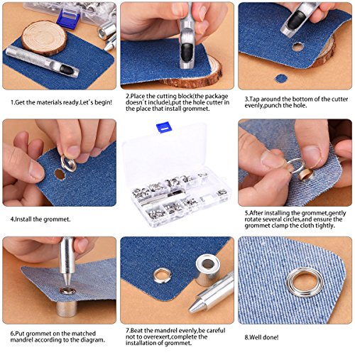 Articoli del pacchetto. Con un taglierino, un mandrino abbinato e 100 set di asole per occhielli (ognuno con 1 occhiello e 1 rondella). Offri una sostituzione economica per un'ampia gamma di applicazioni
