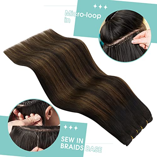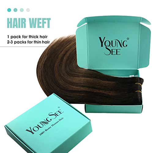 YoungSee 20Pollice Extension Tessitura Capelli Veri Brasiliani Marrone Balayage #2/2/6 Marrone più Scuro Ombre Marrone Medio Extension Capelli Veri Tessitura Castano 100g