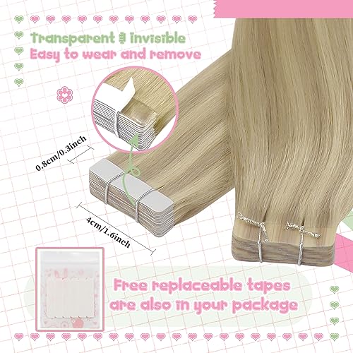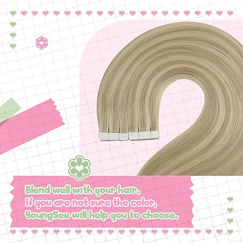 YoungSee Tape in Hair Extensions Blonde Highlight Tape Extensions Human Hair 35cm Ash Blonde Highlight Tape Hair Extensions Real Human Hair 20pcs 50g Tape in Real Hair Extensions #16/22