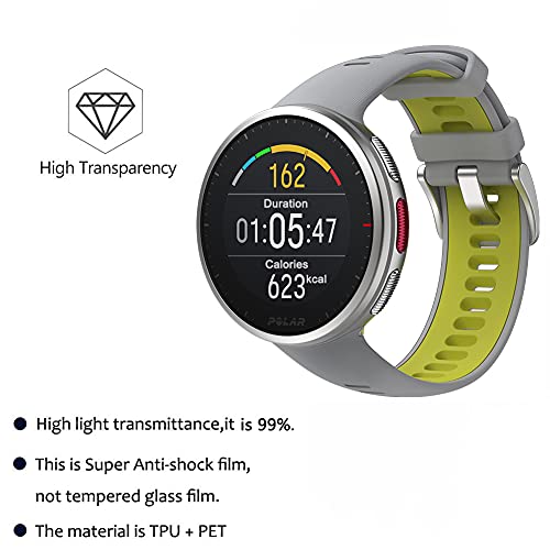 Alta definizione: le nostre pellicole protettive per lo Smart Watch Polar Vantage v2 sono classificate come una "pellicola intelligente" e non in vetro. La chiarezza estrema preserva la luminosità dello schermo originale. Alta definizione ultra chiara con trasparenza del 99,9% per consentire un'esperienza visiva ottimale e naturale.