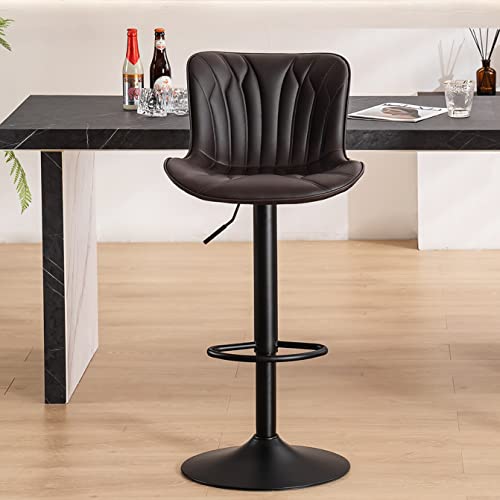 YOUNUOKE Sgabello da Bar Marrone Singolo Regolabile in Altezza con Schienale Sedia Bar Moderno Girevole Imbottito in Finta Pelle per Cucina Bar Cucina Isola (Set da 1)