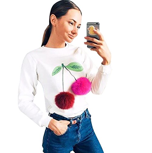YouPue Donne Felpa Pullover Manica Lunga Colorato Peluche Palla Stampa Maglietta Top Sweatshirt Ragazze Ciliegia M