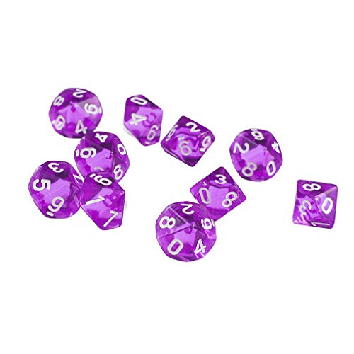 Yourandoll 10 Pezzi Dadi Poliedrici D10 Dadi 10 Facce 16mm Acrilico Dice Dadi da Gioco per RPG DND Dadi Giochi da Tavolo (Viola)
