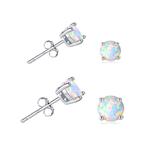 YOURDORA Donna Orecchini a Bottone Opale in Argento 925 2 Coppie 4mm 6mm Rotondo (opale bianco - Placcato in oro bianco)