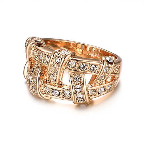 Yoursfs - Anello in Stile Roma, con Finto Diamante, Motivo: Annodato, Prodotto vistoso e Importante, Placcato in Oro 18k, con intrecci diagonali, Adatto per Cocktail Party, Metallo
