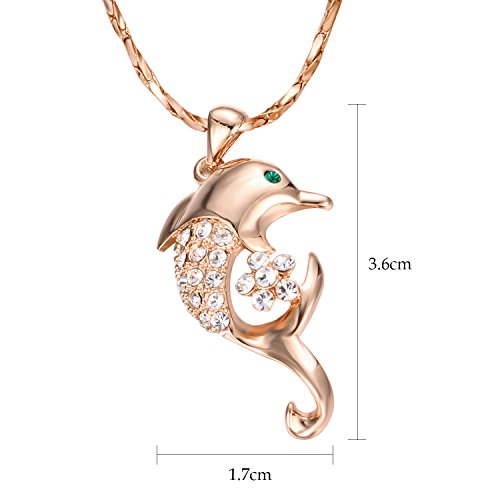 Yoursfs - Ciondolo alla moda, in cristalli austriaci, trasparente, motivo: fiore e delfino, adatto per essere fissato su una collanina, placcato in oro 18 carati