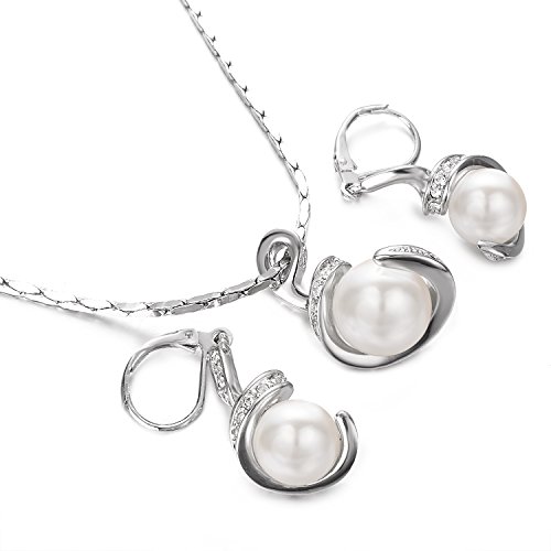 Yoursfs Classe Perla Pendente & Colore Argento Orecchini Per Sposa Matrimonio/Rovesciato Pendente Collana & Orecchini a Caduta Set/Classiche Perle con Diamante Regalo di aAnniversario per Moglie