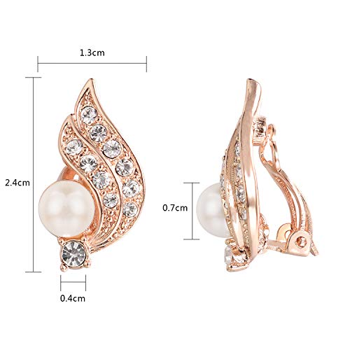 1. Realizzati in perle sintetiche e cristalli di zirconia cubica, placcati in oro rosa 18 carati, di alta qualità, questi orecchini a clip sono perfetti per le donne non forate, non danneggiano la salute, senza nichel, materiali allergici.