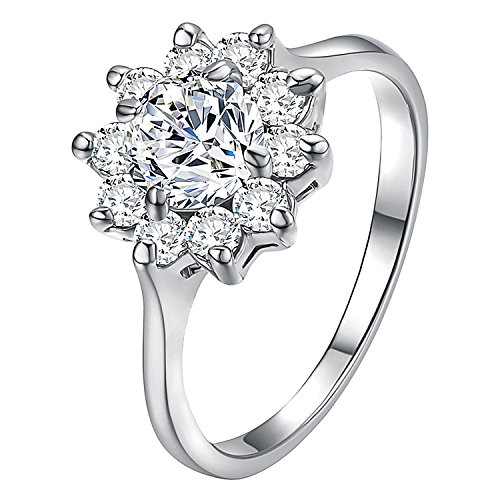 Yoursfs Placcato in Oro Bianco 18k Anelli da Matrimonio Argento Colore Fiocco di Neve Gioielleria per Donne Cristallo Austriaco Fiore Anelli Dono di San Valentino di Ragazza.