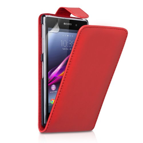 Yousave Accessories Cover per Sony Xperia Z1 Custodia PU Pelle Lanciare Rosso con Stilo Penna
