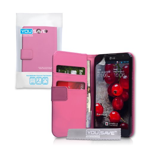 Yousave Accessories®-Custodia a Portafoglio in Pelle PU per LG Optimus G PRO, Colore: Rosa Acceso