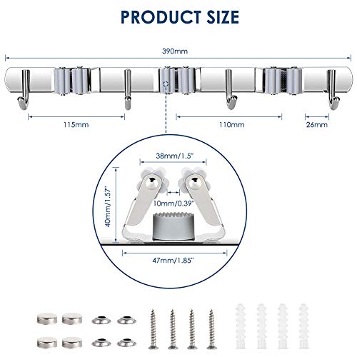 YOUTHINK Porta Scopa 2 Pack, Portascope da Muro Attrezzi in Acciaio Inossidabile Metallo 3 Clip e 4 Ganci Porta Attrezzi da Muro Grigio per Cucina Garage Bagno Giardino, Robusto Salvaspazio
