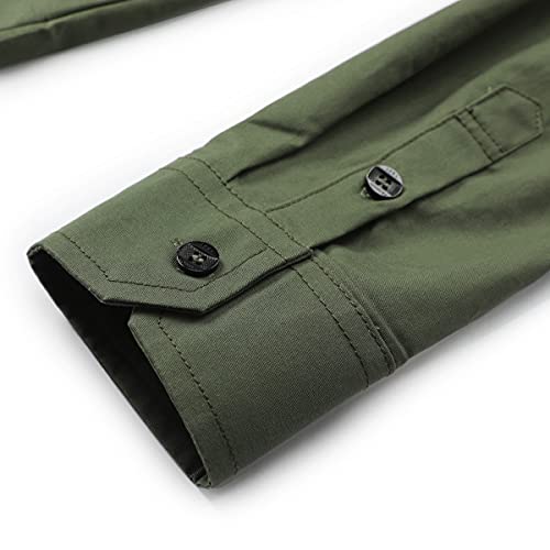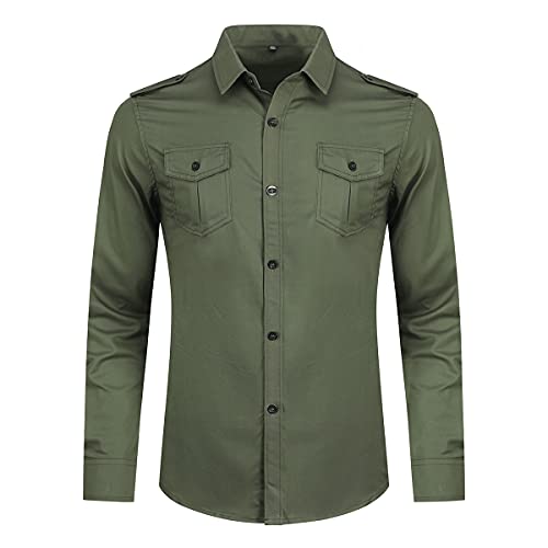YOUTHUP Camicia casual da uomo in cotone camicie a maniche lunghe militari slim fit camicia con epaulette, Verde 6620, XXL