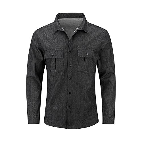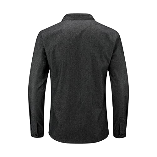 YOUTHUP Camicia Casual da Uomo a Maniche Lunghe in Cotone a Quadri Slim Fit con Camicia Cargo con Taschino sul Petto Nero, S