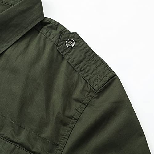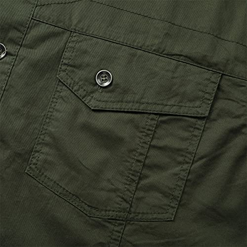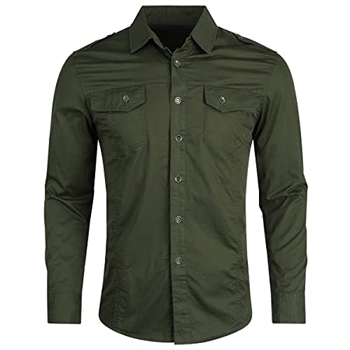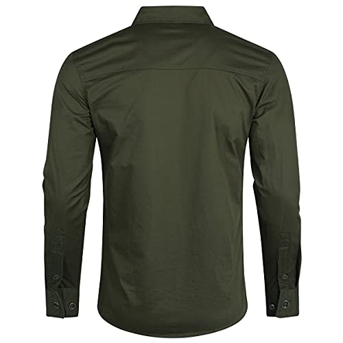 YOUTHUP Camicia Casual da Uomo a Maniche Lunghe in Cotone a Quadri Slim Fit con Camicia Cargo con Taschino sul Petto Verde Militare, S
