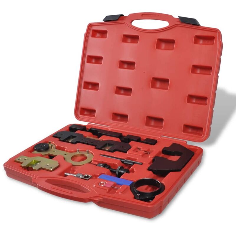 Si tratta di un kit completo per il bloccaggio dell'albero a camme durante il controllo o la regolazione, la sostituzione dell'albero a camme di aspirazione o catena di distribuzione su BWM M40/42/43/44/50/52/54/56. Tutti gli attrezzi sono di alta qualità, e sono progettati per l'uso prolungato in officina. Il kit è classificato di grado industriale. Gli attrezzi sono ben conservati in una custodia robusta per anni di utilizzo. Include gli attrezzi necessari per: Installazione e rimozione dell'albero a camme Sostituzione della catena di distribuzione sui motori M40 Controllo e regolazione dell'albero a camme 11 pz: Attrezzo per bloccaggio albero a camme da usare come OEM 112300 Serratura a camma da usare come OEM 113190 Serratura a camma da usare come OEM 113240 Strumento di tensionamento per la catena di distribuzione da usare come OEM 114220 Kettenraddreher da usare come OEM 115490 Raccordo ad aria compressa da usare come OEM 113450 Tendicatena Abstecksatz da usare come OEM 113290