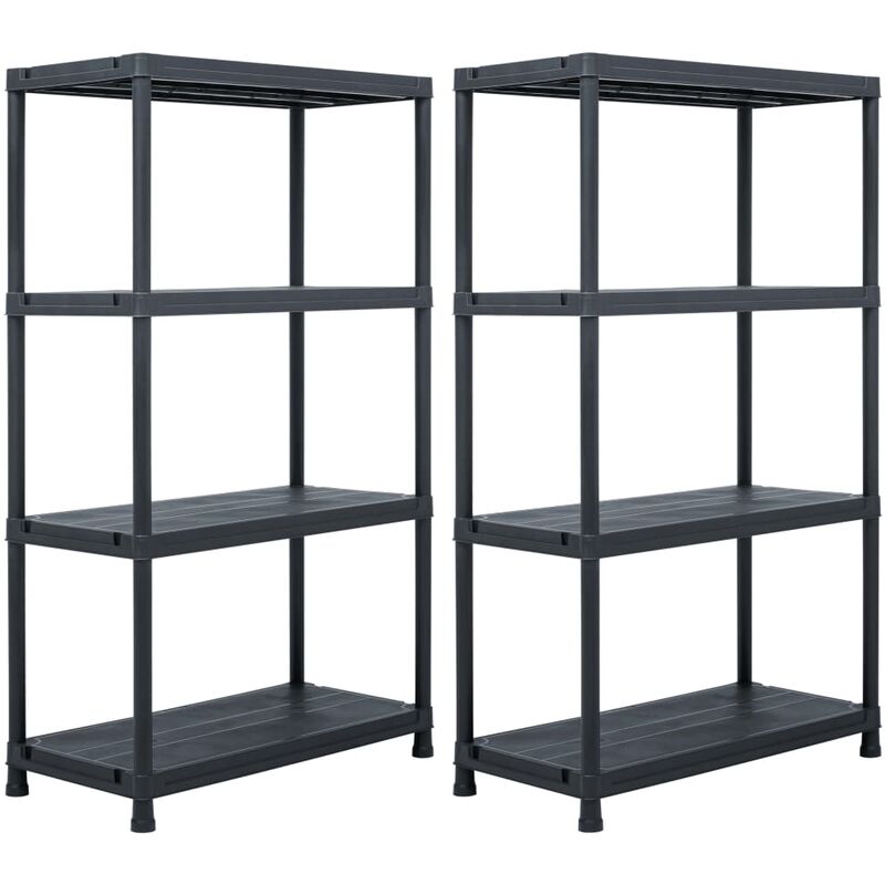 Questo scaffale può essere utilizzato in salotto come libreria oppure come espositore di oggetti decorativi, o anche sul patio come espositore per piante, ecc. Lo scaffale è realizzato in plastica robusta e resistente, per questo si pulisce facilmente con un panno umido ed è molto adatto ad ambienti umidi, come cucina, bagno, magazzino e cantina. Caratterizzato da un design compatto, lo scaffale ottimizza al massimo l'uso di spazi limitati. Con i materiali di montaggio inclusi, lo scaffale è facile da assemblare. La consegna include 2 scaffali. Colore: Nero Materiale: Plastica Dimensione: 80 x 40 x 138 cm (L x P x A) Con 4 ripiani Capacità massima di carico di ogni ripiano: 50 kg Capacità massima di carico totale: 200 kg Materiali di montaggio inclusi Certificato TüV-GS ATTENZIONE: Per evitare il ribaltamento questo prodotto deve essere utilizzato con il dispositivo di fissaggio a parete fornito. La consegna include 2 scaffali