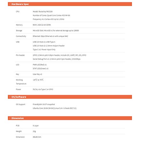CPU ad alte prestazioni: utilizza Rockchip quad-core a 64 bit SoC RK3328 (ARM Cortex-A53) e ha 2 GB di RAM DDR4 a 32 bit.