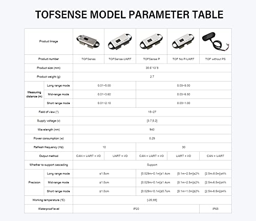 Youyeetoo TOF Serise Lidar Range 0.03-8M FOV 27° risoluzione 1mm 10Hz Support Cascade Multiple Communication interfaces for Drone Industrial Sensing Robot Smart Home (TOF Sense P)