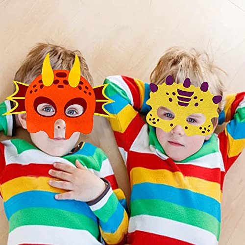 【Materiale per la Protezione Dell'ambiente】le maschere di dinosauro per bambini sono realizzate in feltro di alta qualità, sicure, non tossiche, rispettose dell'ambiente, non facili da strappare.
