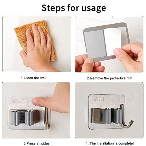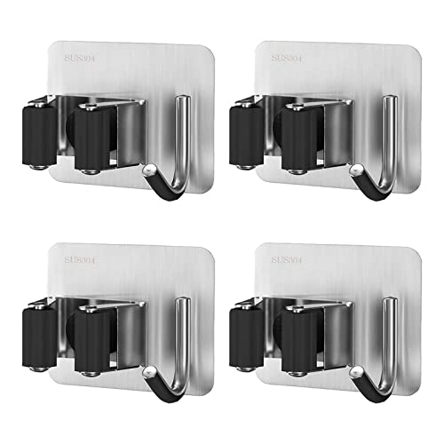 YOUYIKE Portascopa Autoadesivo da Muro,4 Pezzi Porta Scope in Acciaio Inossidabile,Senza Perforazione,Appendiscope da Muro per la Cucina,Bagno,Garage
