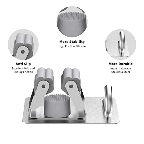 【Materiale in Acciaio Inossidabile 304】Il supporto per scopa in acciaio inossidabile 304 + silicone, più resistente e durevole del supporto per scopa in alluminio e plastica, è resistente all'umidità, alla ruggine e non teme l'ambiente umido.