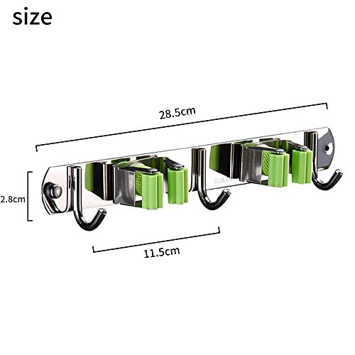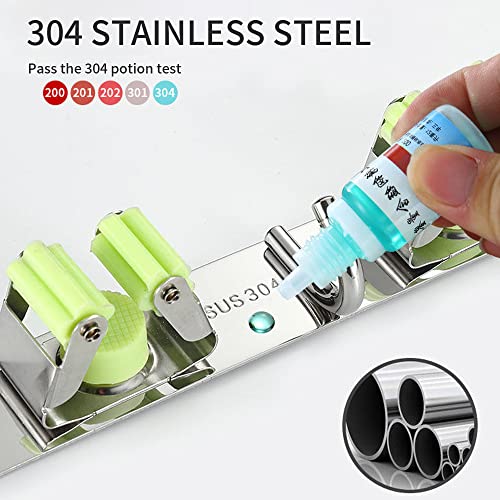 YOUYIKE Portascope da Muro, Porta Scope Parete con 2 Posti e 3 Ganci,Appendi Scopa da Muro in Acciaio Inossidabil per Cucina/Garage/Bagno/Lavanderia/Casa/Giardino