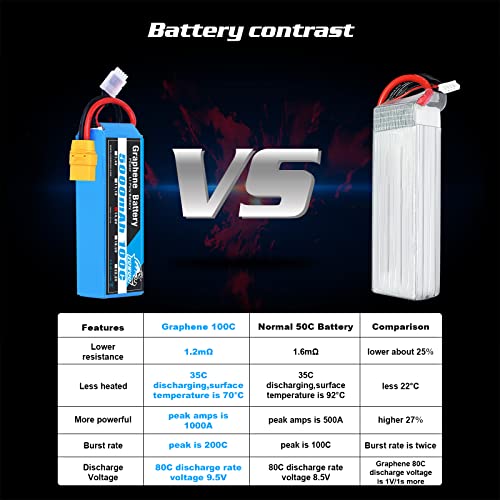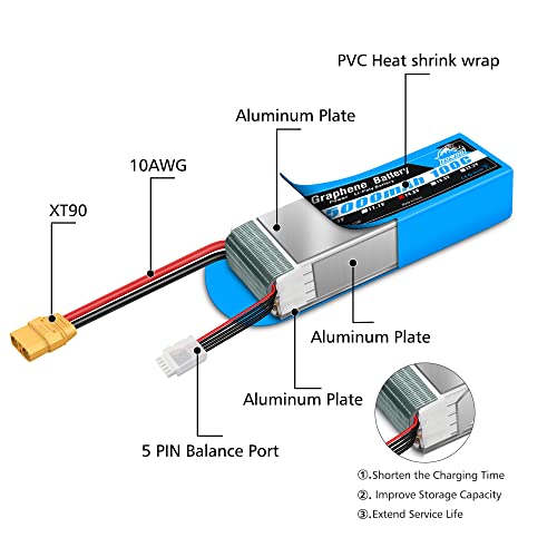 【Nota sulla tensione】 lipo 4s 5000mah Il meccanismo di protezione integrato garantisce una ricarica e un utilizzo sicuri. Non sovraccaricare più di 4.2V e non scaricare oltre 3.7V. Non lasciare mai la batteria incustodita durante la ricarica.