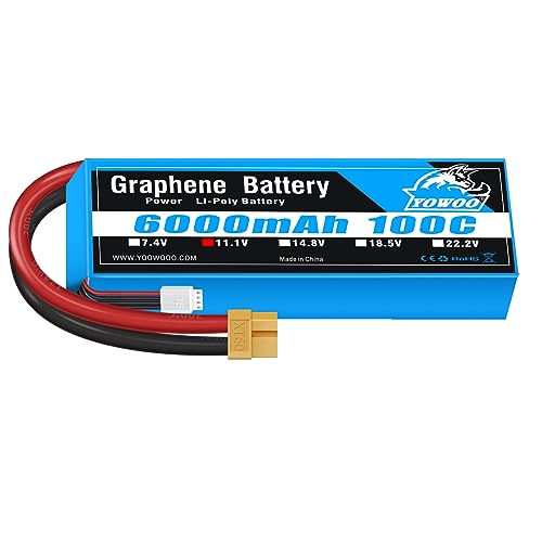 YOWOO Batteria al grafene Lipo 11.1V 6000mAh 100C XT60 con connettore XT60 per Elicottero RC, Aereo, multirotore, Barca, Auto, Camion, Traxxas E-Revo 6s brushless, Axial Yeti XL 1/8, E-Revo 2.0 Arrma