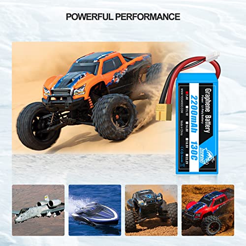 Yowoo 2 pezzi Batteria Lipo 2s 2200mAh 130C 7.4V RC Batteria Grafene con connettore XT60 Compatibile con RC 1/16 o 1/14 RC Cars RC Helicopter FPV Racing UAV Drone (extra one connettore Deans T)