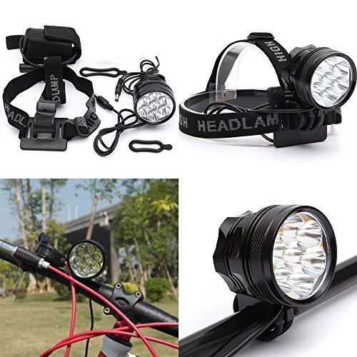 YOZATIA - Torcia frontale da bicicletta e mountain bike con caricabatterie, 10.000 lumen, 7 lampadine Cree Xm-l T6
